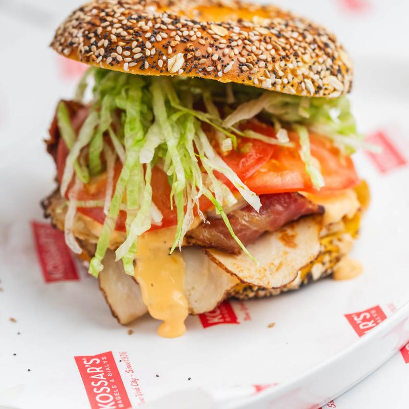 Turkey bacon, egg, and cheese on your choice of bagel or bialy.